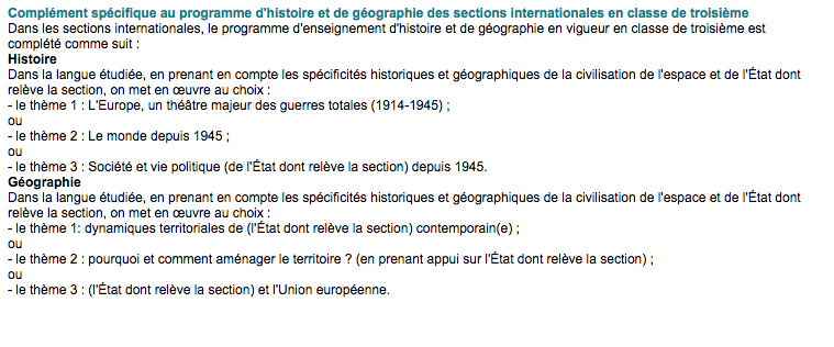 Concernant la classe de 3ème les programmes sont modifiés en section internationale britannique: