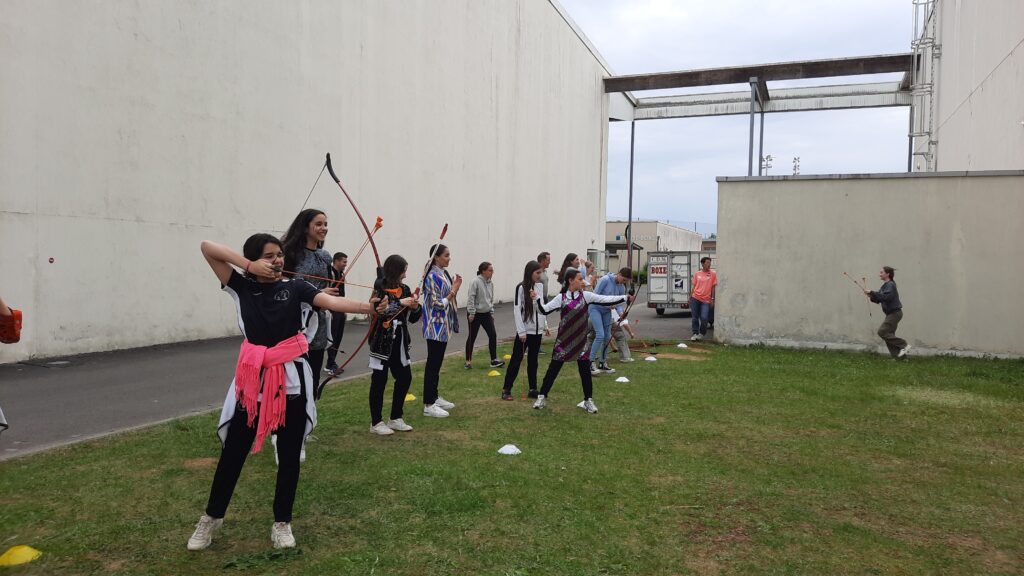 Après un trajet en train sans encombre, nous avons été accueillis au CREPS de Bourges, afin d’y prendre nos quartiers et découvrir le lieu de compétition. La première journée était consacrée aux inscriptions, aux briefings des jeunes coachs, Chloé pour notre équipe, et à la réunion et test de jeunes juges, Margot chez nous. Tout le groupe a aussi pu profiter des activités proposées pour l’accueil des équipes, en apprenant le flashmob commun, et en participant aux petits challenges, comme le tir à l’arc, ou le stand déguisement.