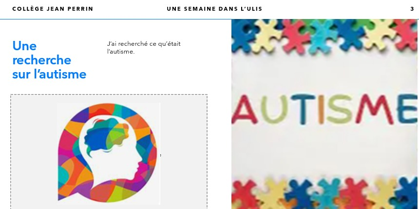 Un élève raconte son vécu : « J’ai été dans le dispositif ULIS pendant une semaine et cela a été enrichissant. J’ai effectué plusieurs missions : aller chercher du matériel à l’intendance, aider les élèves à se concentrer, écrire et reformuler les consignes.