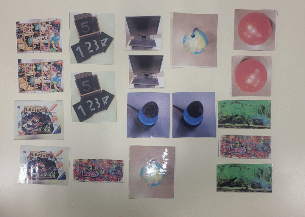 J’ai créé mon propre jeu pédagogique à destination des élèves de l’ULIS : j’ai pris du matériel en photo pour les imprimer, les plastifier et les découper pour en faire un Memory.