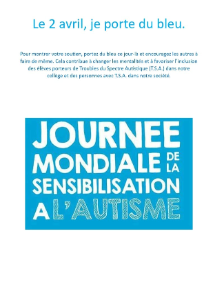 2 avril : Journée mondiale de sensibilisation à l’autisme Publié le 27 mars 2026 par CHRETIEN Aurelie La communication se prépare au Collège Jean PERRIN