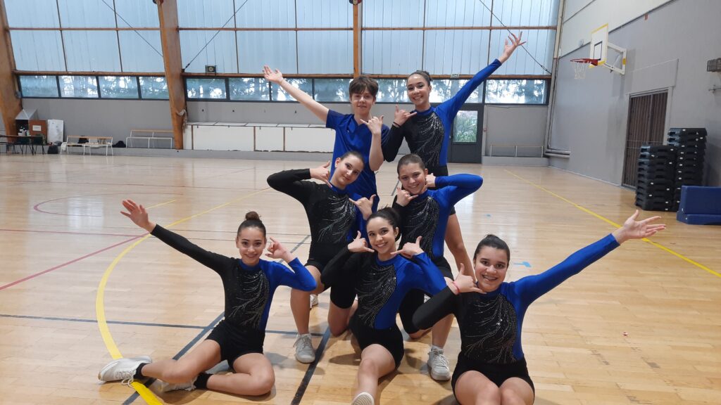 Enfin c’était au tour de l’équipe des bleu.es composée de Léa (jeune coach), Julie, Gabrielle, Kawthar, Sylia et avec le renfort cette année de Chloé et Gaspard. Avec deux très beaux passages, ils et elles mettaient tout le monde d’accord, et c’est avec un nouveau titre de champion.nes départementaux.ales qu’ils et elles repartaient avec joie.